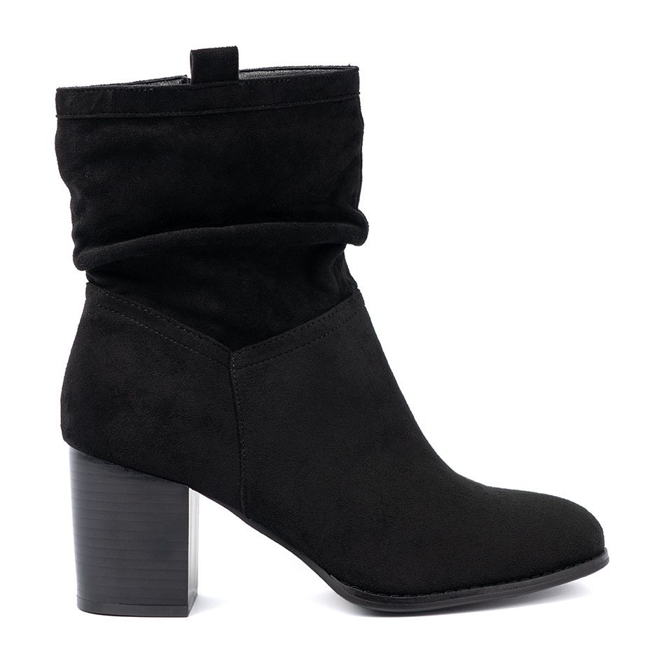 Upptäck elegans och komfort i en i Shelvt -stövlar, vilket perfekt kompletterar varje daglig stilisering. Dessa svarta mocka stövlar på stolpen med en skrynklig övre är ett måste i höst och vinter. De är gjorda av ekologiska mocka av hög kvalitet och erbjuder inte bara ett fashionabelt utseende utan också tar hand om miljön.