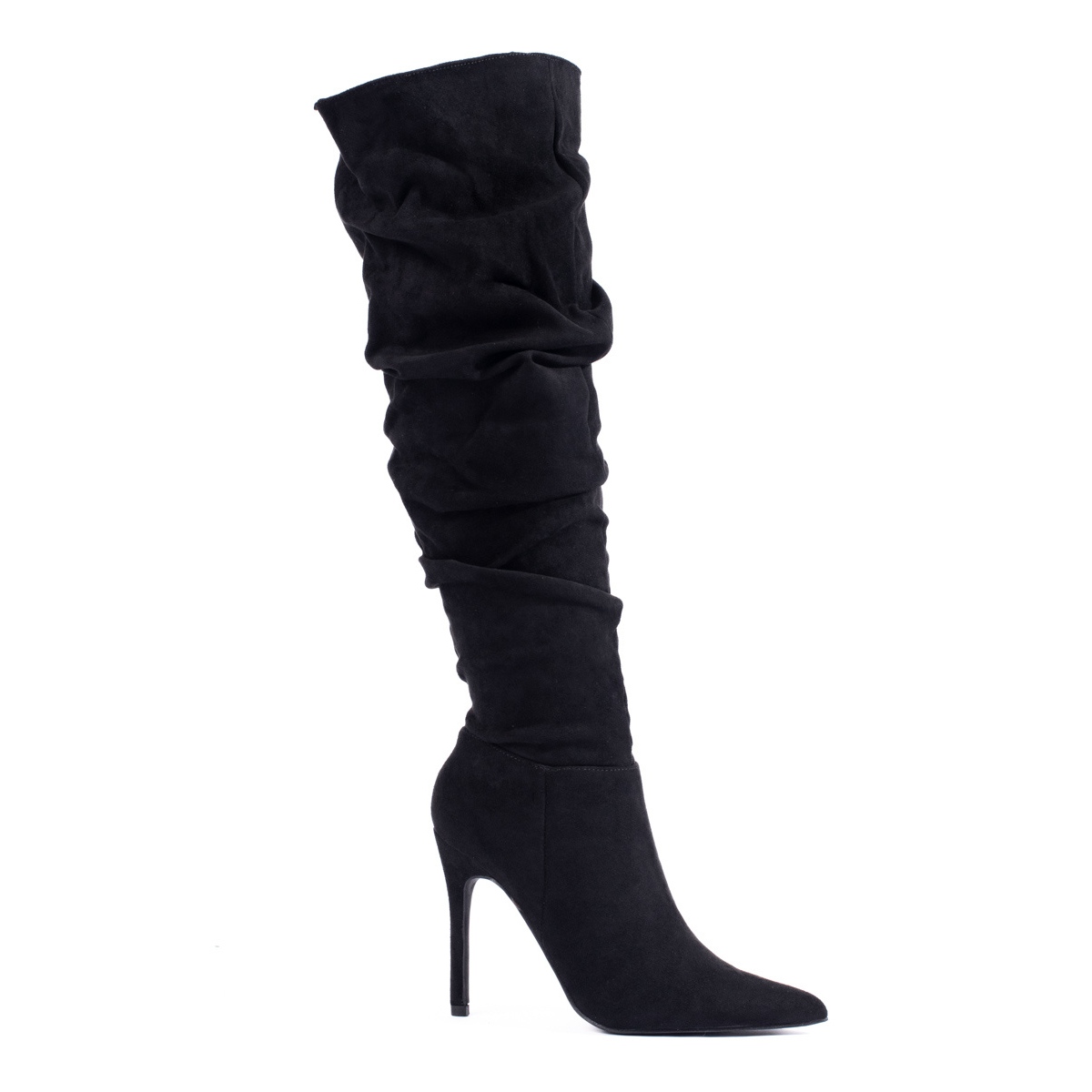 - Modell: Högklackade stövlar i svart mocka för kvinnor