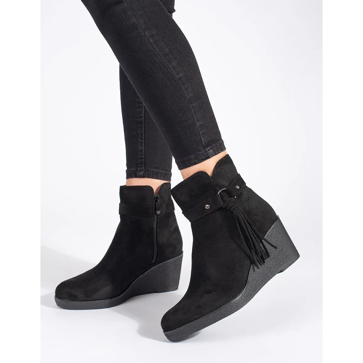 Stövlar är perfekta för hösten och vintern, är det perfekta komplementet till varje daglig stilisering. Tillverkarens ursprungliga förpackning gör dem också till en bra presentidé. Välj mocka svarta kilar med fransar för att lägga till en unik charm till ditt utseende!