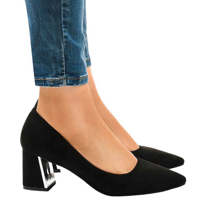 Vi erbjuder eleganta högklackade pumps i svart mocka L439, som kommer att glädja alla älskare av klassiker och stil. Dessa pumps är gjorda av högkvalitativt mockaläder och kombinerar tidlös design med moderna trender. Tack vare en 6-centimeters klack på en solid blockklack passar de för både vardagliga och formella stilar, vilket ger stil och elegans.