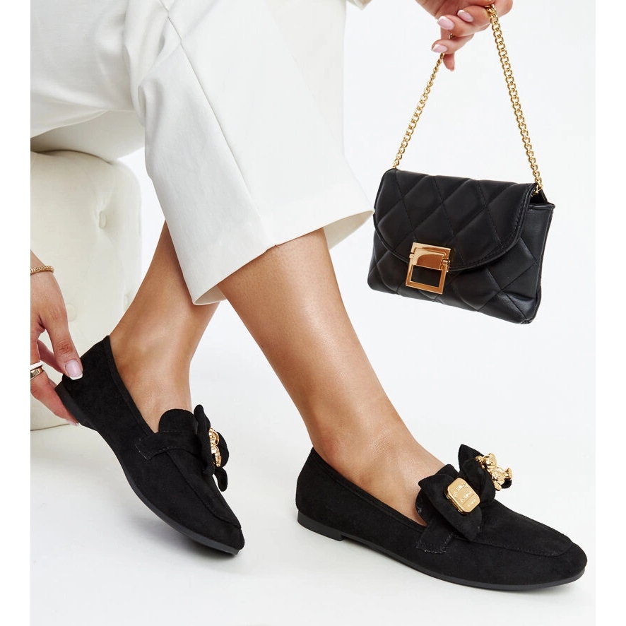 Inna marka Svarta mockasiner med dekorativ Kibra säkerhetsnål