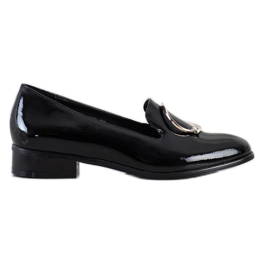 Vi presenterar extraordinära svarta mockasiner med dekoration av Vinceza, som kombinerar komfort med elegant stil. Dessa slip-on-skor är gjorda av lackkonst och är det perfekta valet för kvinnor som värdesätter både komfort och ett moderiktigt utseende. Deras djupa svarta färg kontrasterar perfekt med den smakfulla silverdekorationen på näsan, vilket ger dem karaktär och elegans.