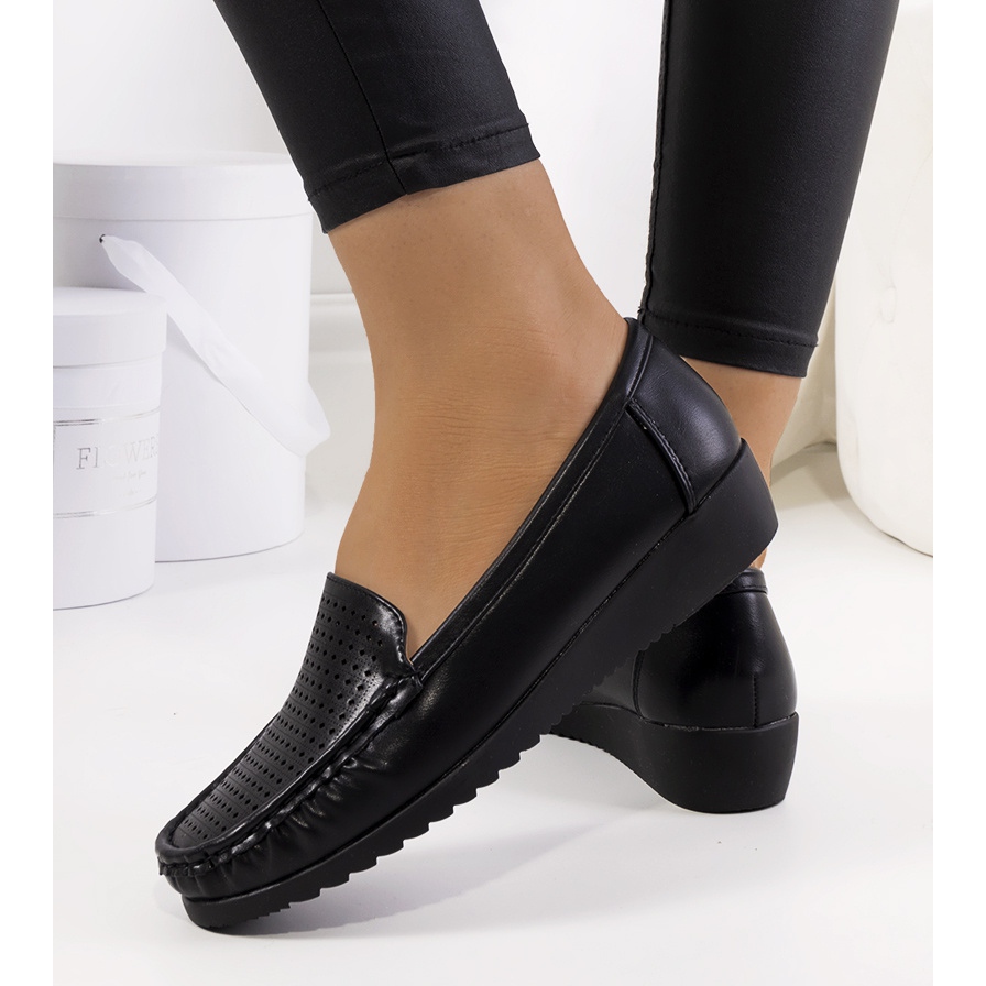 Svarta Dalal wedge mockasiner är ett utmärkt val för vårdagar och kommer perfekt att komplettera alla stylingar. Dessa eleganta damskor kännetecknas av en ovandel gjord av ekologiskt kvalitetsläder, dekorerad med ett elegant genombrutet mönster som ger dem lätthet och originalitet.