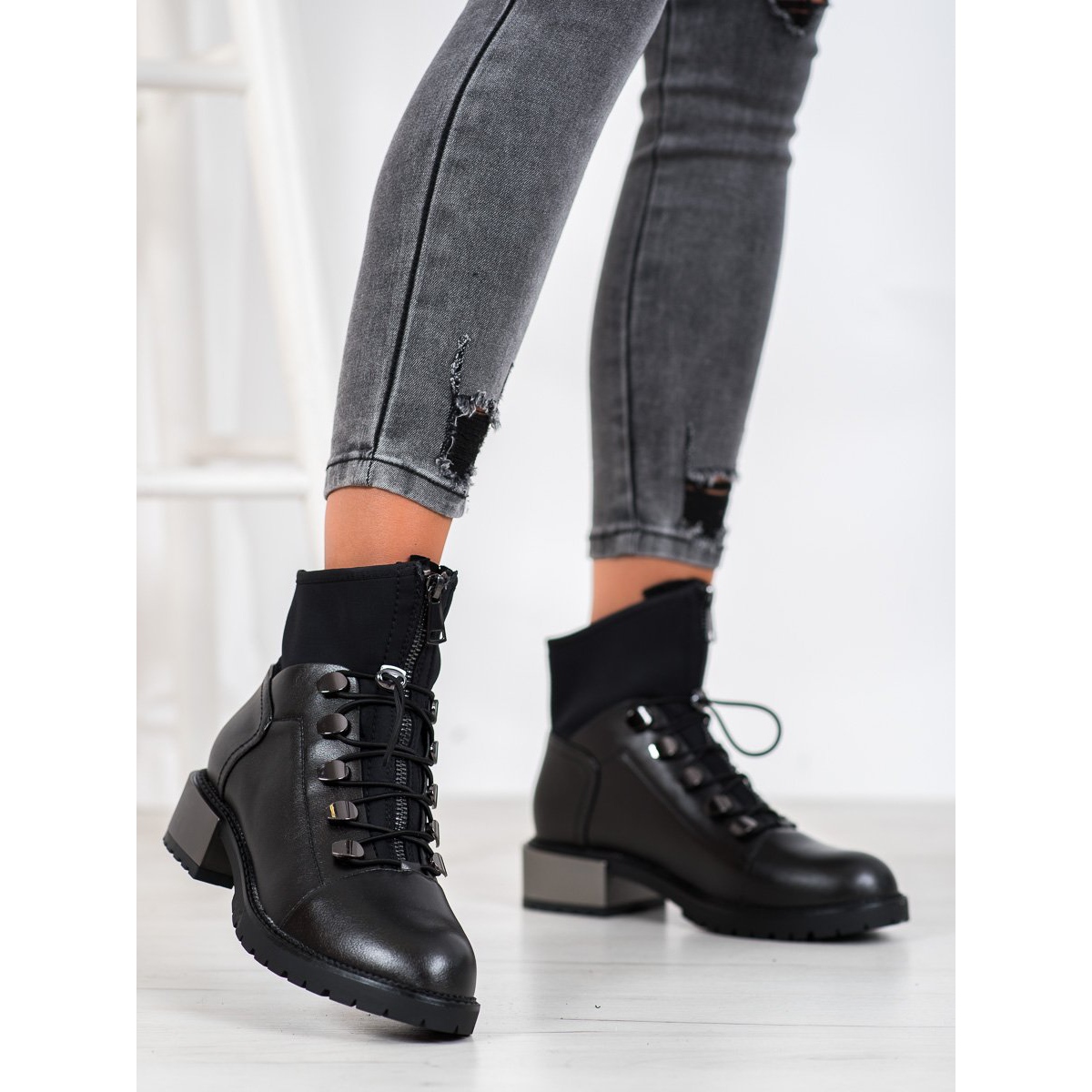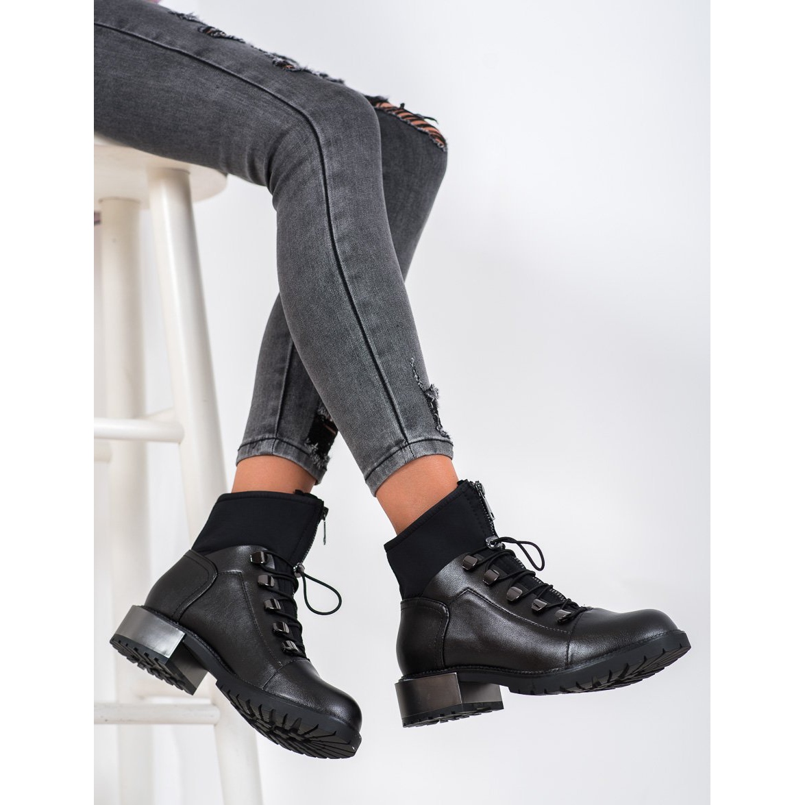 Tack vare deras universella svarta färg kan modearbetare enkelt kombineras med olika stilar - från avslappnad till mer rockig. Den övre höjden på 11-12 cm gör att dessa stövlar passar perfekt till fotleden, samtidigt som de säkerställer tillräcklig isolering.