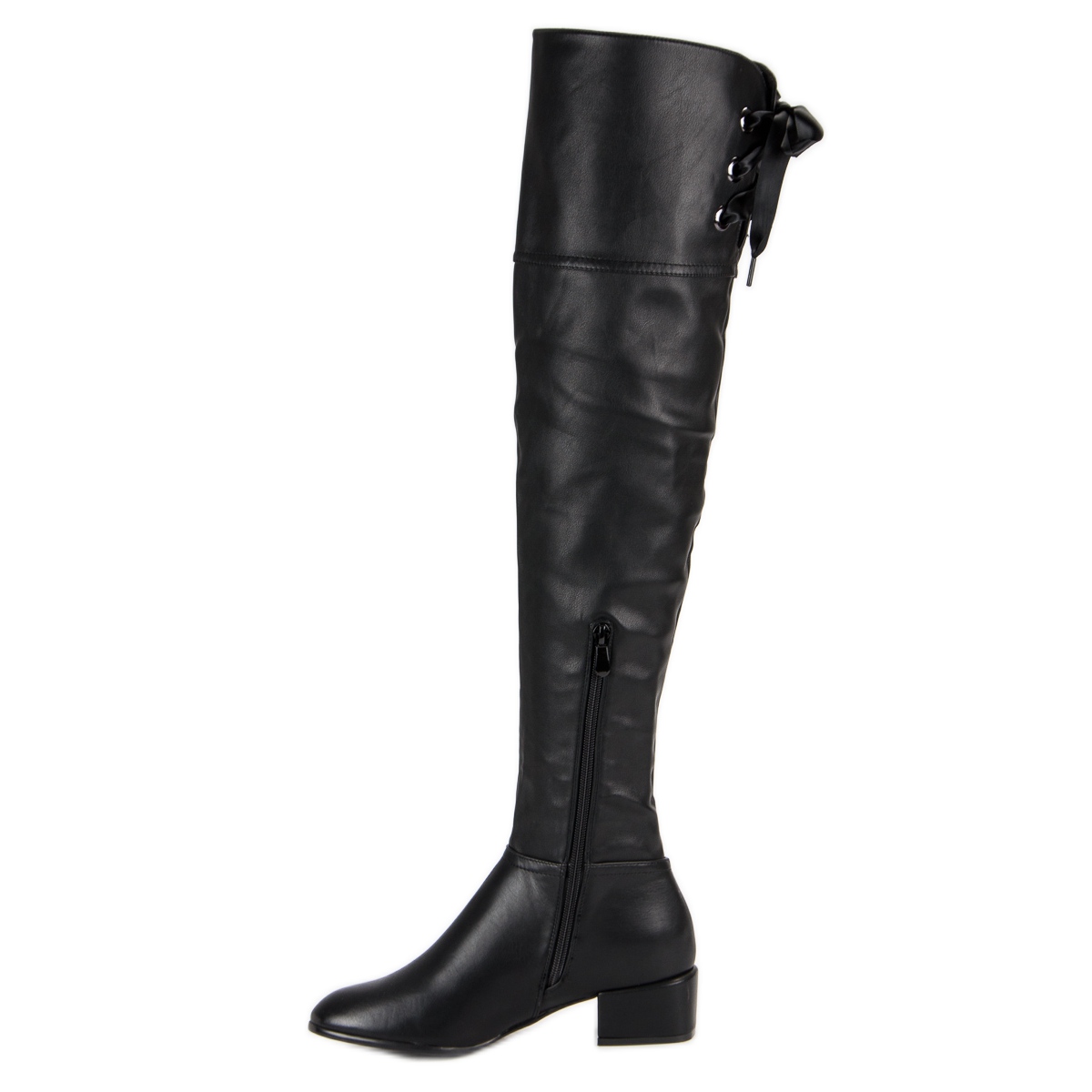 Det klassiska snittet som når över knäet framhäver benen, lägger till elegans till siluetten och förlänger den optiskt. Den runda tån och syntetsulan säkerställer komfort och stabilitet vid varje steg. Utan ett mönster eller ytterligare dekorationer är dessa stövlar en universell lösning som passar perfekt in i alla stylingar.