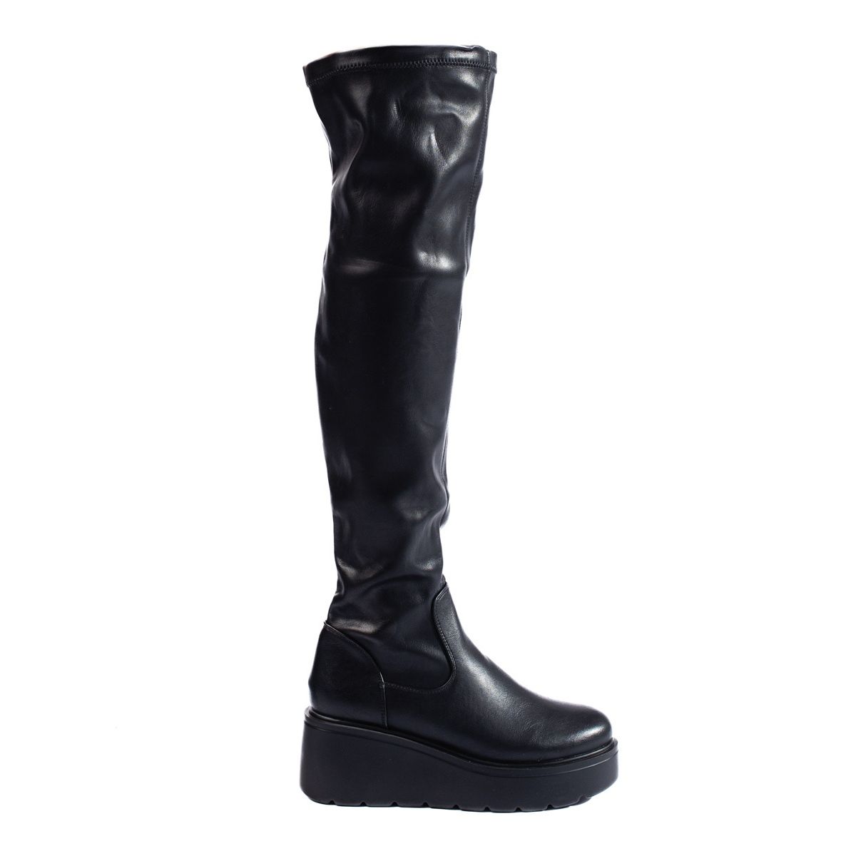 Djupsvarta musketörer passar perfekt med olika stilar - från klassiskt till vardagligt till de med en mer raffinerad karaktär. Den höga ovandelen, ovanför knäet, 55 cm hög och 20 cm bred, ger inte bara ett unikt utseende, utan formar även benet perfekt.