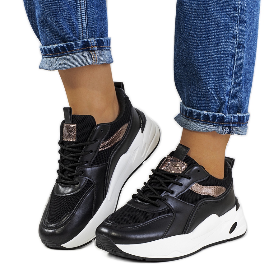 Letar du efter de perfekta sneakers som perfekt matchar din vardagsstyling? Nazaria sneakers i svart med metallic accenter är ett perfekt val! Ovandelen på dessa skor är gjord av ekologiskt läder av hög kvalitet, vilket ger dem ett elegant utseende och hållbarhet.
