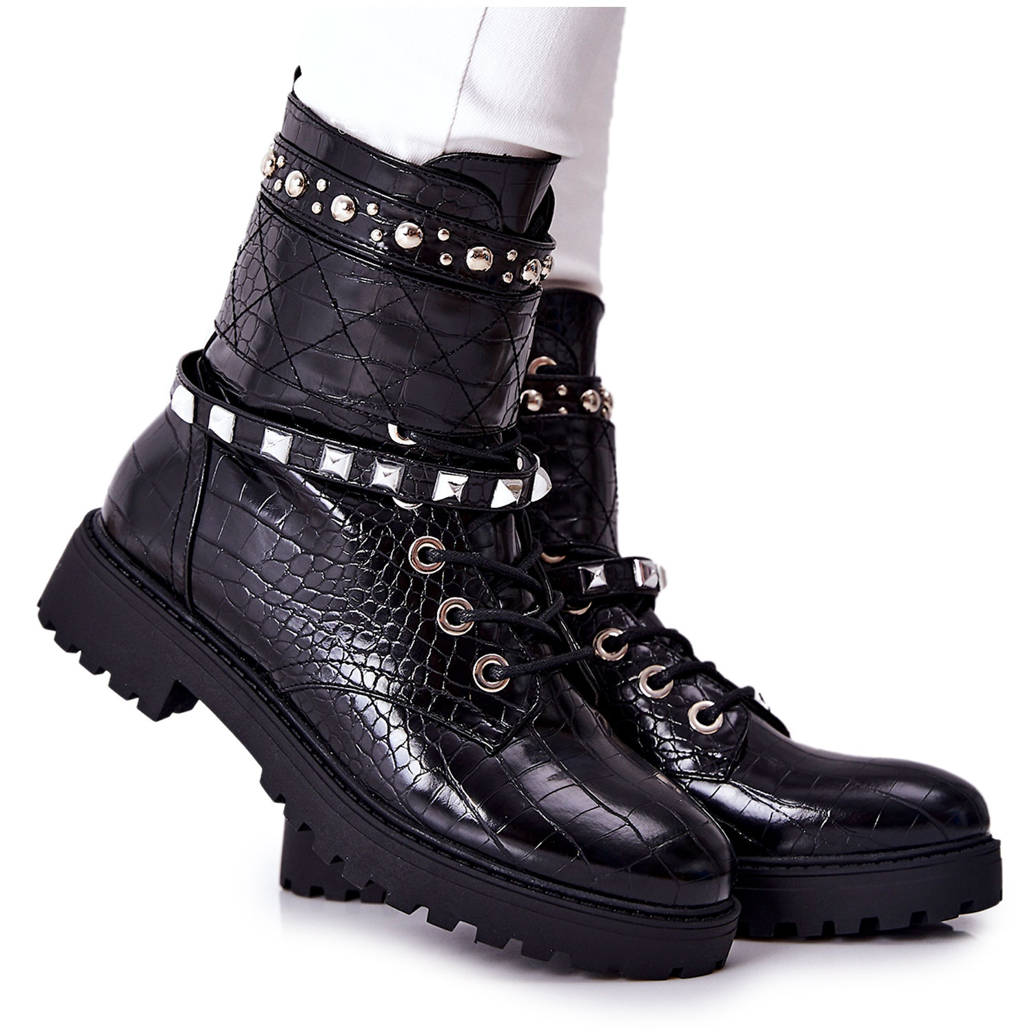 Letar du efter snygga och bekväma ankelboots som kommer att ge karaktär till din vardagliga styling? Här är PG1-stövlarna som uppfyller dina förväntningar! Tillverkade av högkvalitativt eko-läder, de kännetecknas inte bara av en elegant svart färg, utan också av unika detaljer - dekorativa ränder med nitar.