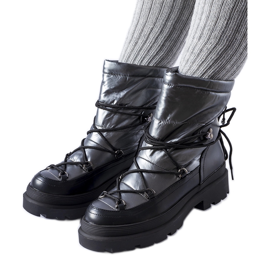 Detaljer: Svarta och grå Eagleville snöstövlar med manschett