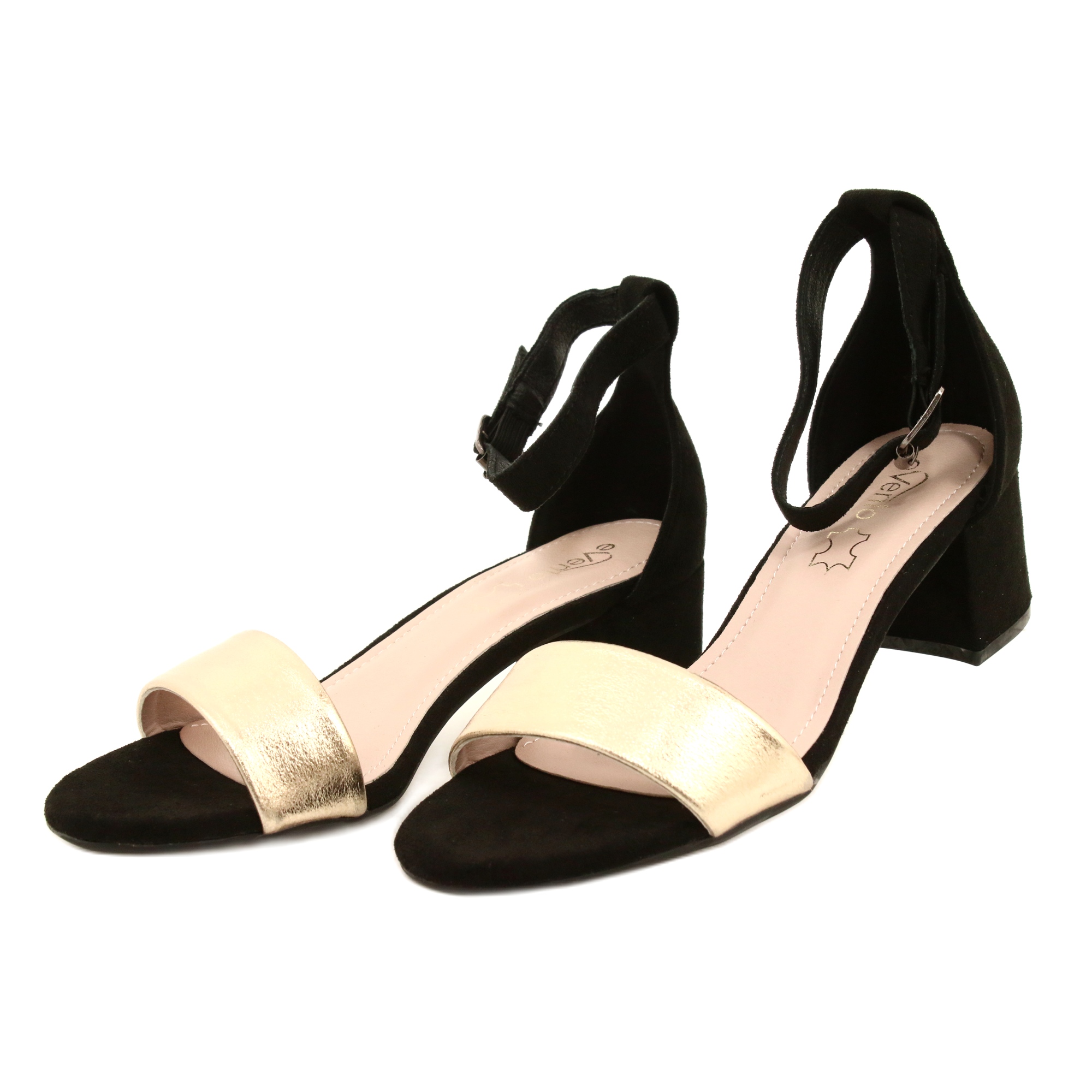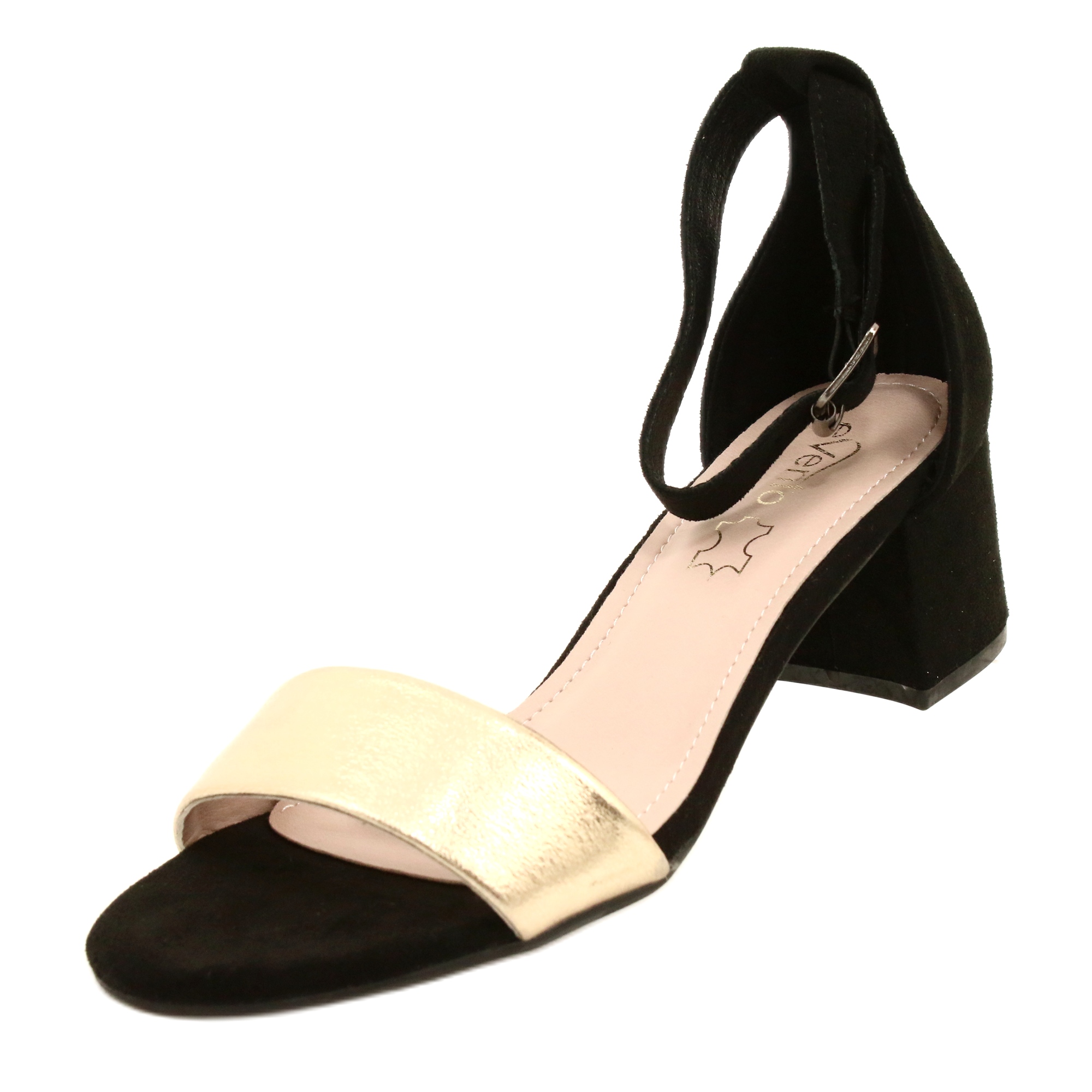Evento 20SD98-1618 högklackade sandaler i svart och guld är eleganta och snygga skor som är perfekta för alla tillfällen. Tillverkad av högkvalitativa material skapar mockaöverdelen i kombination med ekologiskt läder en harmonisk helhet som fångar ögat och framhäver den unika stilen.