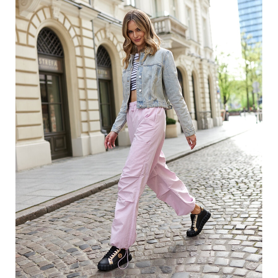 Upptäck moderiktiga och bekväma Bionda-sneakers i svart och guld som kommer att ge fräschare till din skokollektion. Dessa låga skor med en massiv sula är ett perfekt val för kvinnor som värdesätter stil och komfort. Deras unika design med en rund näsa och metalliska accenter gör dem inte bara praktiska, utan också extremt visuellt attraktiva.