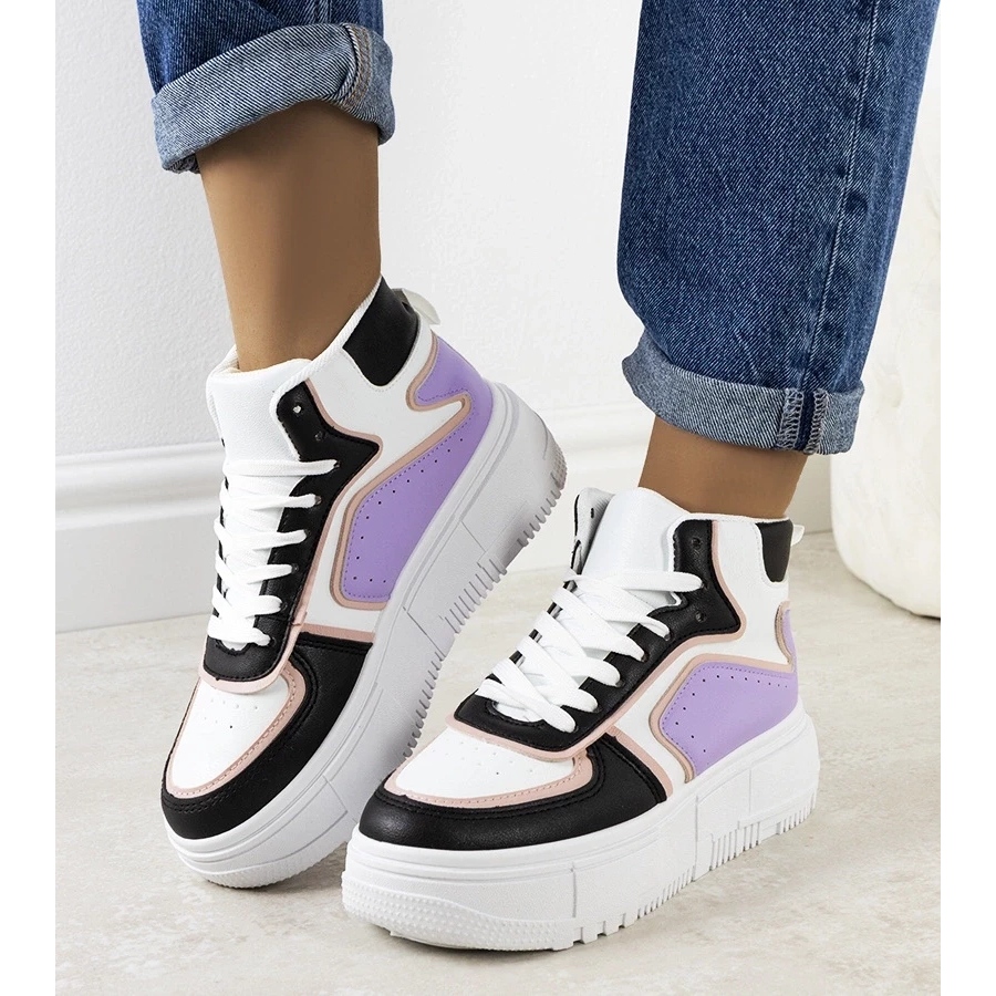 Svarta och lila sneakers för Zettas fotled från tillverkaren D/GMR är det perfekta valet för kvinnor som värderar stil och komfort i vardagliga stiliseringar. Dessa sneakers kännetecknas av en modern design, som perfekt betonar varje figur. Tillverkade av högkvalitativt material, de anpassar sig perfekt till benet och säkerställer komfort under dagen.
