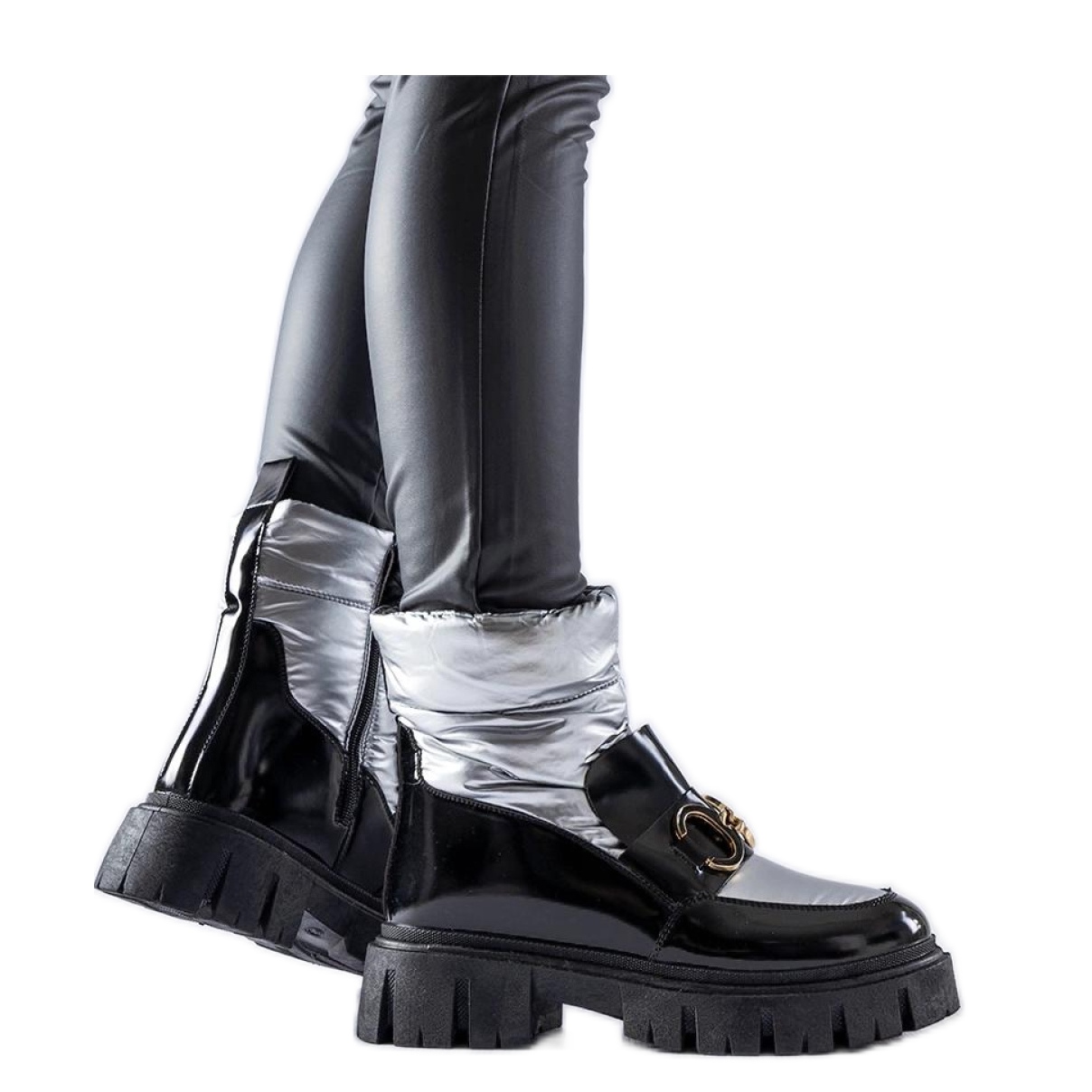 Svarta och silver lackerade snöstövlar är den perfekta lösningen för varje kvinna som vill kombinera stil med funktionalitet under vinterförhållanden. Dessa eleganta fotledskor kännetecknas av en unik design och kombinerar en fashionabel svart färg med subtila silver accenter.