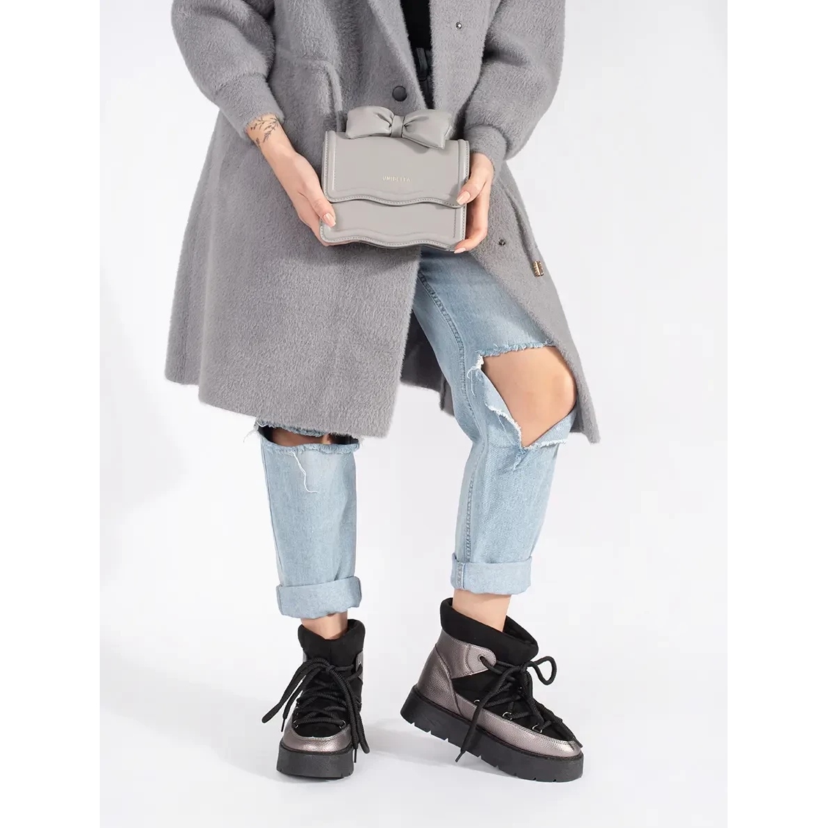 Upptäck en unik komfort och stil som ger svarta och silver snörstövlar på en tjock sula. Dessa fashionabla skor, producerade av ett ansedd varumärke, är den perfekta lösningen för kalla dagar under hösten och vintersäsongen. De är gjorda av organiskt läder med en textilinredning och ger utmärkt skydd mot kyla medan de tar hand om komfort när de bär.