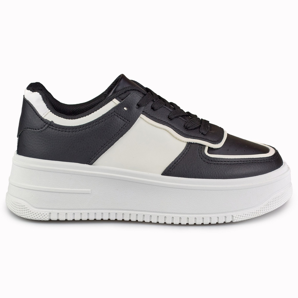 Detaljer: Svarta och vita plattformssportskor