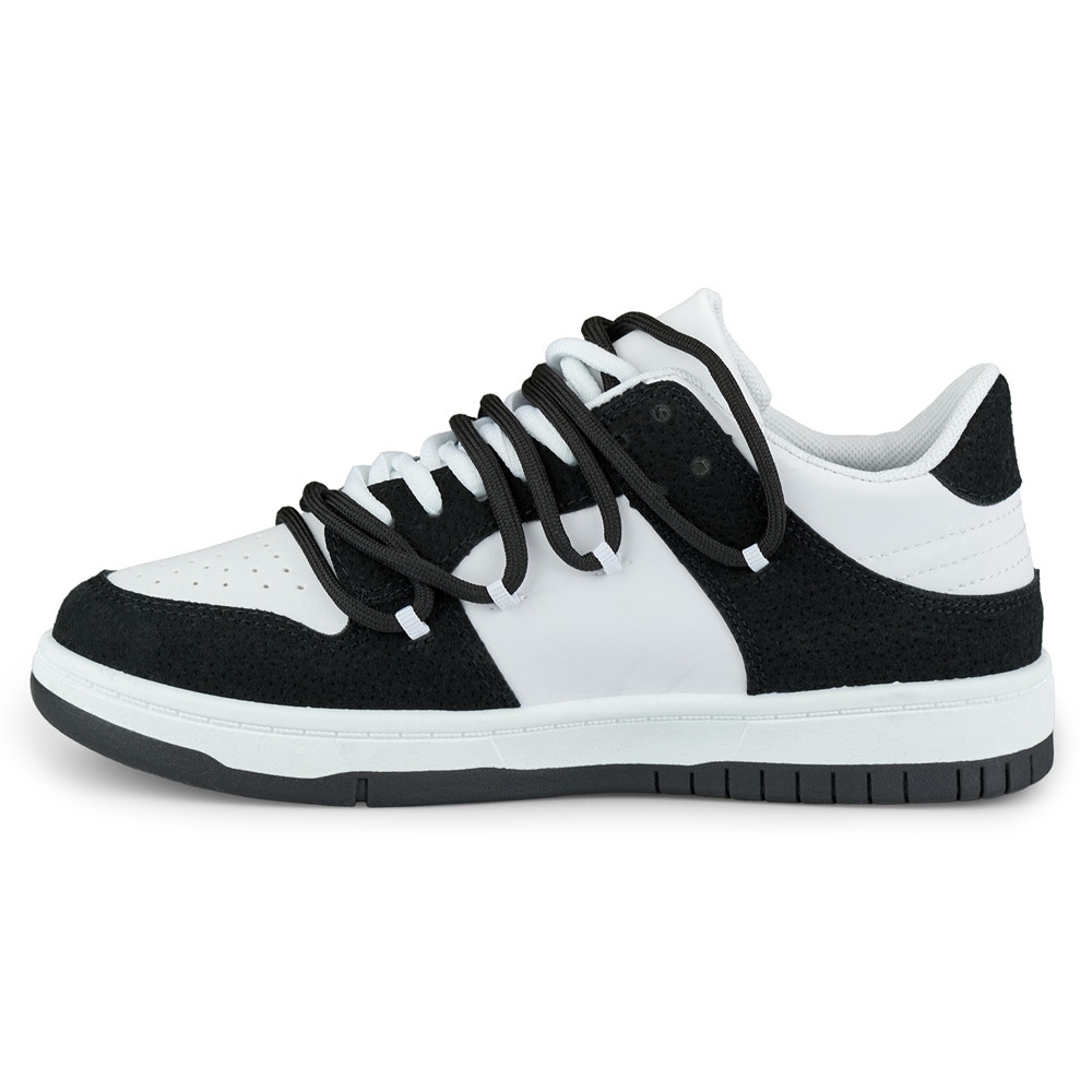 Moderna, universella sneakers i kontrasterande svarta och vita färger, skapade för vardagens komfort och stadsstil. Kombinationen av ekologiskt läder och mocka ger dem en elegant karaktär samtidigt som en sportig snitt upprätthålls.