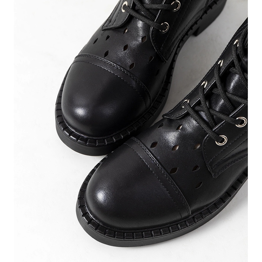En elegant kombination av ett rovdjur av glans med en feminin, openwork -finish - Finlay -modellen är stövlar som kommer att ge karaktär till sommar- och övergångsstyliseringar. Tillverkad av ekologiskt läder, med ytterligare fästelement och ett praktiskt slott - de kombinerar komfort med ett fashionabelt utseende.