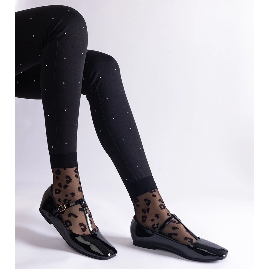 Den eleganta designen av ballerinas kännetecknas av en klassisk svart färg, som perfekt passar in i olika stiliseringar. Den lackerade ytan ger dem en elegant glans, vilket gör dem till ett perfekt val för både speciella tillfällen och varje dag. Tack vare dem får varje stilisering en snygg och modern accent.