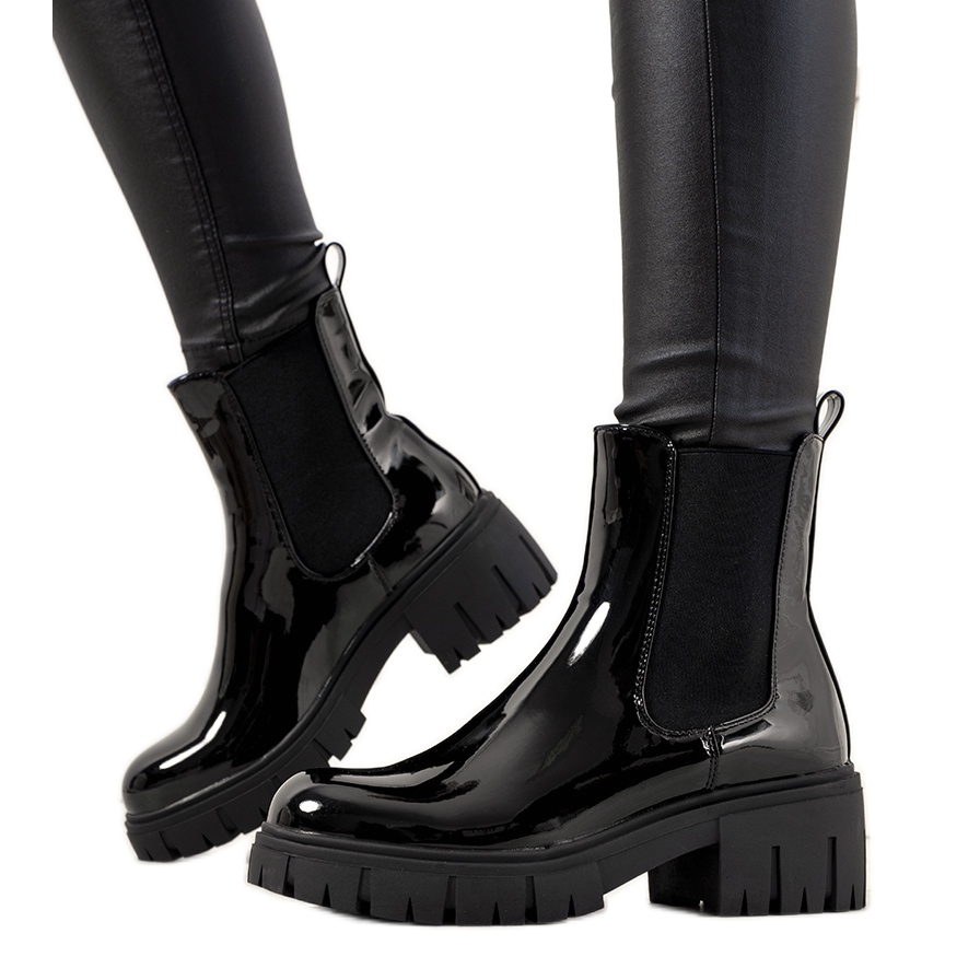 Upptäck stil och komfort med svarta patentisolerade Campi-stövlar, som passar perfekt till trenderna för höst- och vintersäsongen. Tillverkade av högkvalitativt ekologiskt patentläder, lockar dessa ankelboots uppmärksamhet med sin eleganta finish. Flexibla inlägg i ovandelen säkerställer en perfekt passform till benet, vilket gör dem lättare att ta på och garanterar komfort under alla förhållanden.