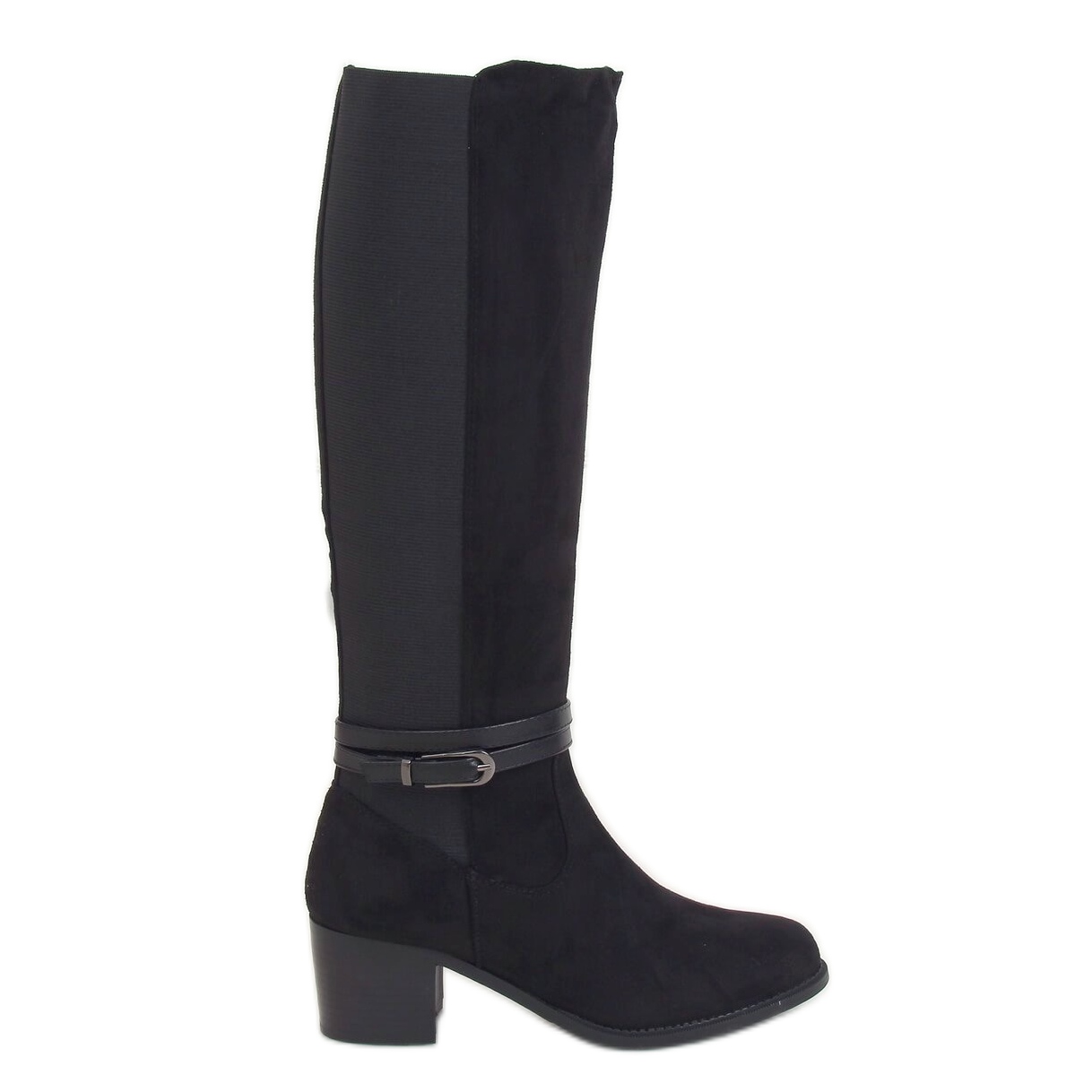 PE230P Svarta stövlar med en flexibel ovandel är ett perfekt val för varje kvinna som vill kombinera elegans med komfort. Dessa klassiska stövlar i en tidlös svart färg njuter av sin noggrant genomtänkta design. Ovandelens flexibla inlägg gör att de passar perfekt till vilken kalv som helst, vilket garanterar bärkomfort.