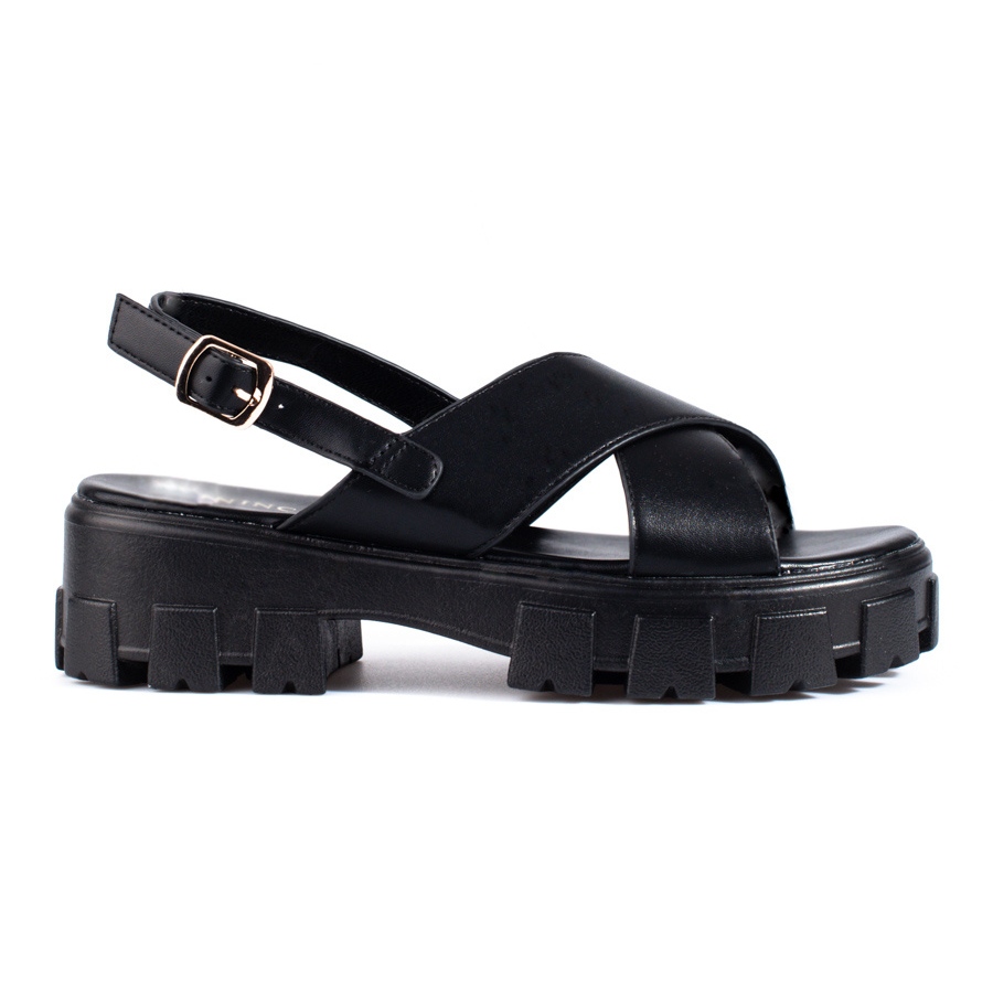 Svarta sandaler på en tjock plattform från Vinceza är ett perfekt val för vår- och sommardagar. Deras eleganta, avslappnade stil gör dem till det perfekta komplementet till vardagsstyling. Dessa sandaler kännetecknas av en öppen klack, vilket garanterar komfort och bekvämlighet att bära, och den 5 cm höga plattformen ger lätthet och gör dem mycket stabila.