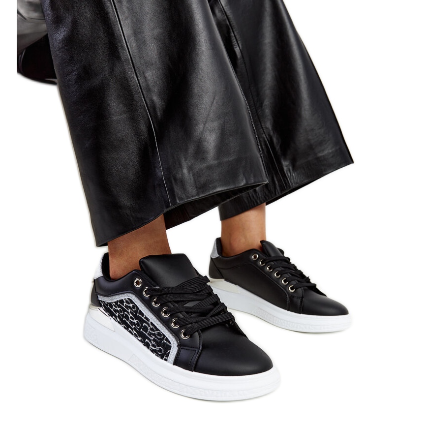 Svarta sneakers på en plattform med fekte till måste-ha glitter i varje vårgarderob! De kännetecknas av ett lågt snitt och en rund näsa, vilket gör dem extremt bekväma och perfekta för långa dagar tillbringade utomhus. Tack vare det snörda fästelementet kan du enkelt matcha dem till din fot, vilket säkerställer ännu större bärande komfort.