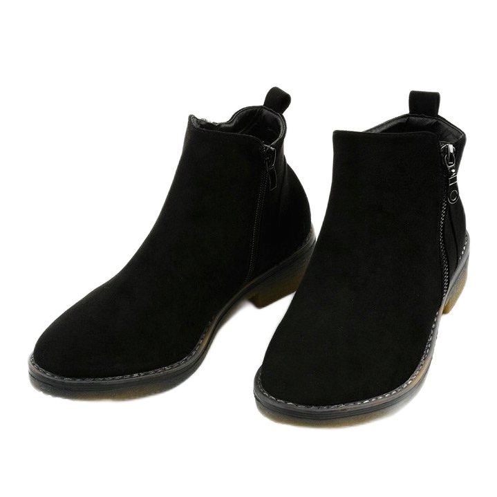 Framtill har skorna lätt rundade tår, vilket ger subtilitet, och baktill finns en inbyggd häl, som inte bara ser bra ut, utan också stabiliserar foten. Tack vare den vertikala dragkedjan på sidan är det extremt enkelt och bekvämt att ta av och på kängorna.