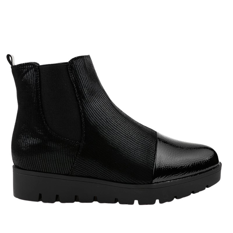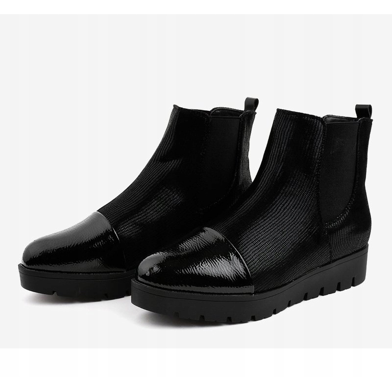 Detaljer: Svarta platta stövlar med elastiskt band KLS-83-1