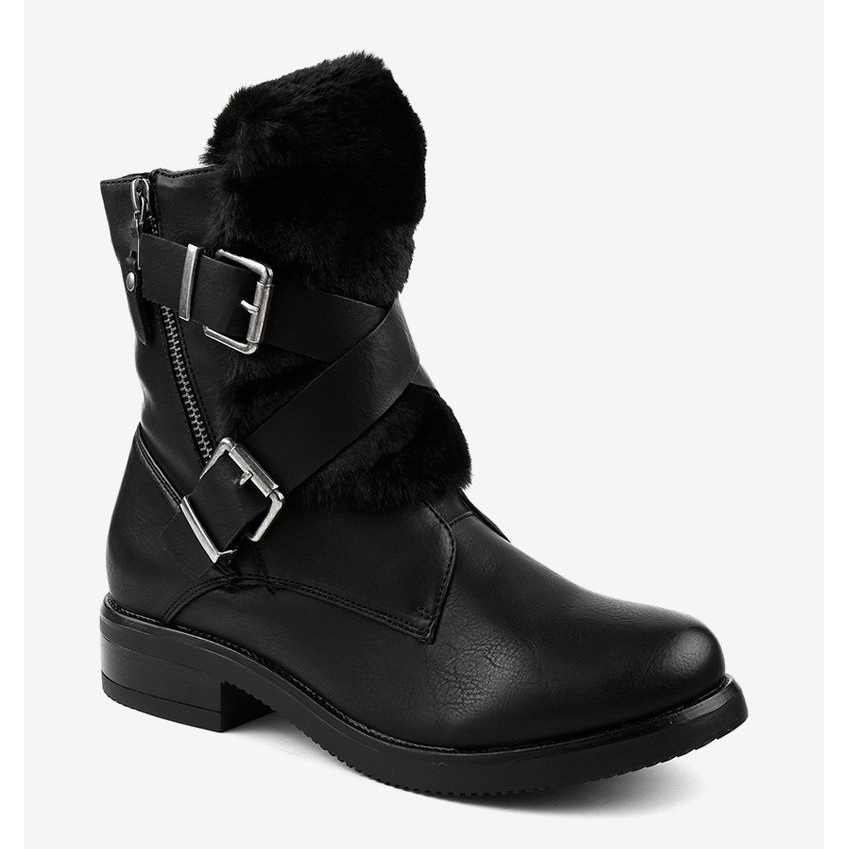 Svarta platta ankelstövlar med päls (modell 1061A-PA) – Elegans kombinerat med komfort