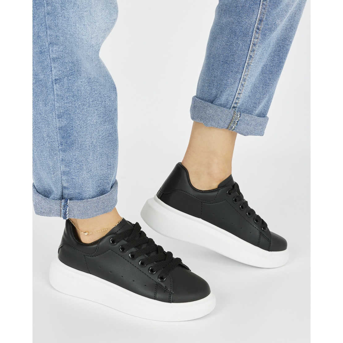 Detaljer: Svarta plattformssportskor för kvinnor