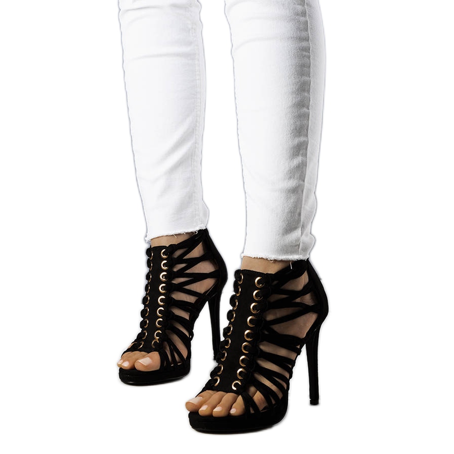 Svarta sandaler på pompis höga klackar - ett fantastiskt val för sommarfester
