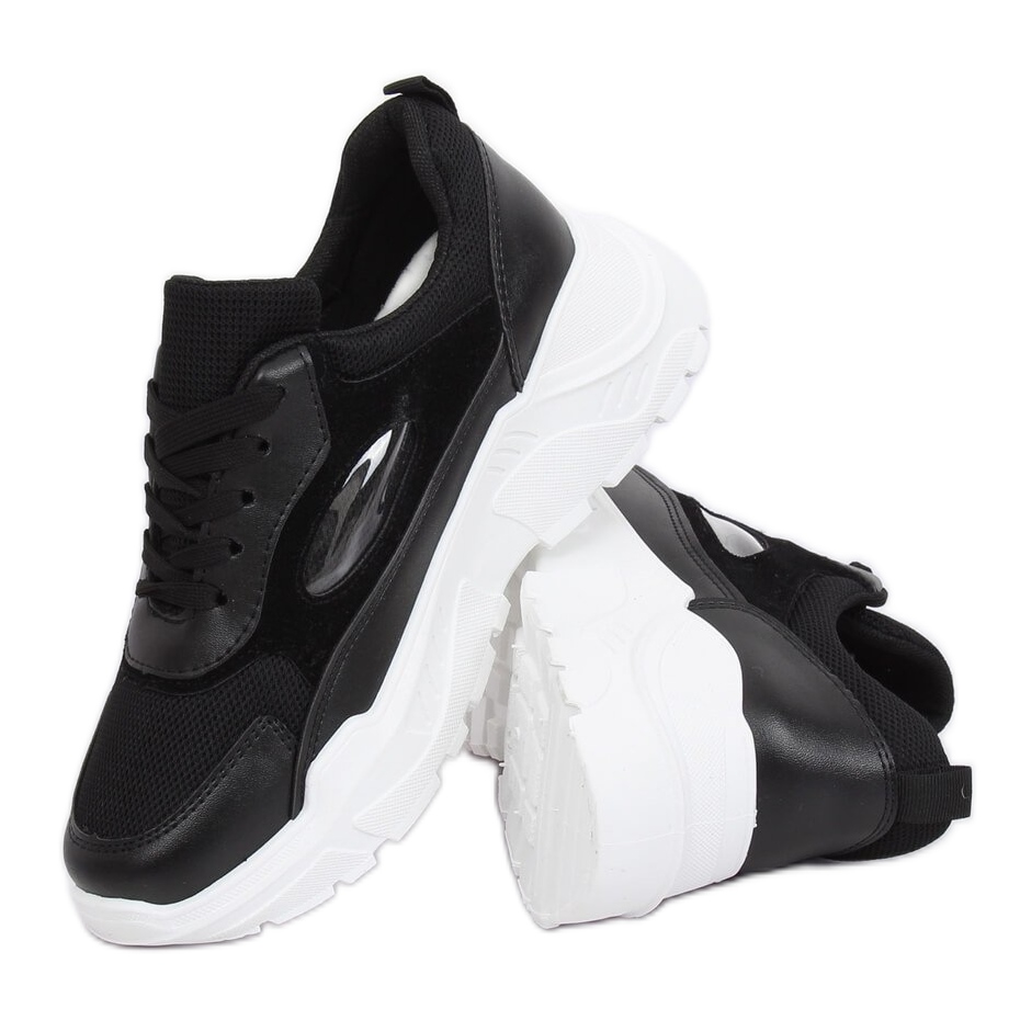 Vi presenterar fashionabla damsportskor PP-37 Svart, som gläds inte bara med sitt utseende, utan också med den komfort de erbjuder. Dessa svarta sneakers med hög sula är den perfekta lösningen för kvinnor som vill lägga till några centimeter och optiskt förlänga benen, utan att ge avkall på komforten.