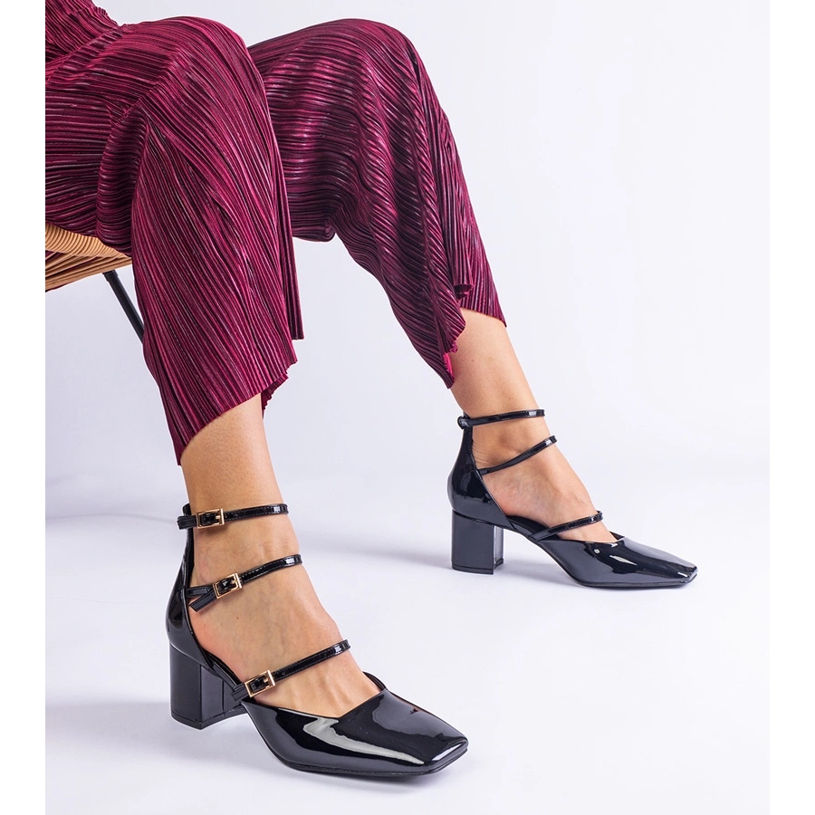 Inna marka Svarta pumpar lackade på ett inlägg med spännen