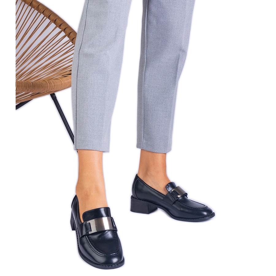 Upptäck elegans vid varje steg med våra svarta pumpar på en låg stolpe med en metallisk dekoration. Dessa unika skor är det perfekta valet för varje kvinna som vill kombinera stil med komfort. De är gjorda av organiskt läder med hög kvalitet, de glädjer inte bara med ett attraktivt utseende utan också hållbarhet, vilket gör dem till en pålitlig följeslagare varje dag.