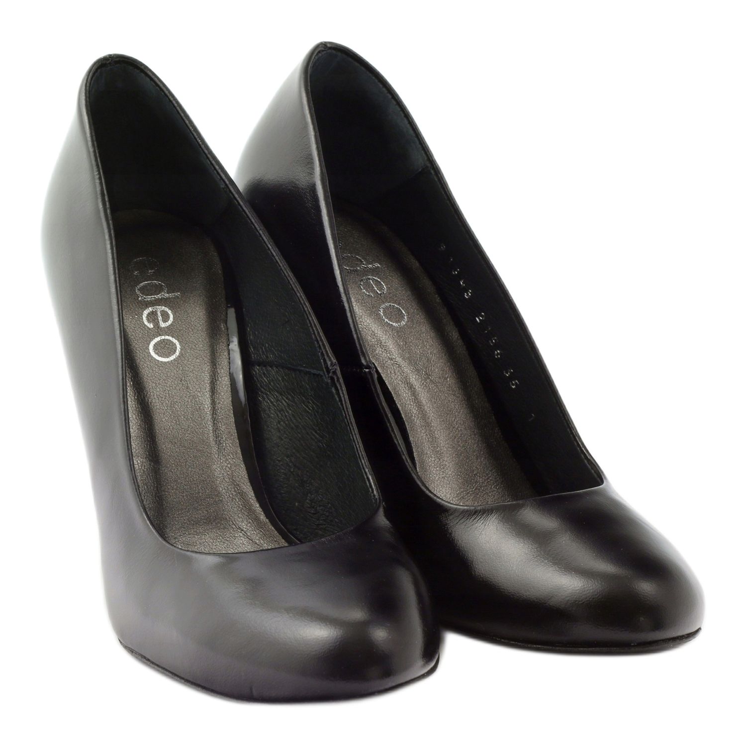 Edeo högklackade pumps i svart är det perfekta valet för kvinnor som vill kombinera elegans med komfort. Modellen wz.2156, helt gjord av naturligt läder, speglar de senaste modetrenderna och säkerställer samtidigt hög kvalitet på utförande. Tack vare mjuka invändiga insatser passar dessa pumps perfekt till foten, vilket garanterar komfort hela dagen.