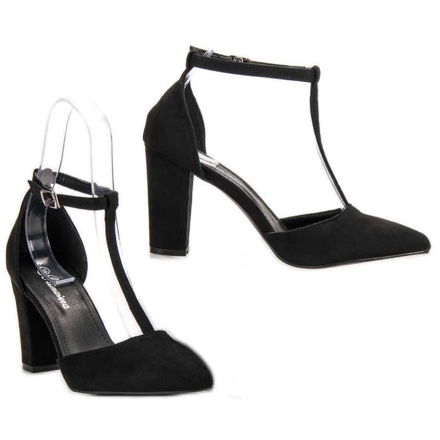 Den släta sulan av syntetiskt material gör pumparna inte bara eleganta, utan också funktionella. De är perfekta för olika tillfällen - från vardagsutflykter, genom fester, till kvällsfester. Deras universella svarta färg gör dem lätta att kombinera med andra garderobsartiklar, och den klassiska stilen kommer säkert att tilltala varje fashionabel kvinna.