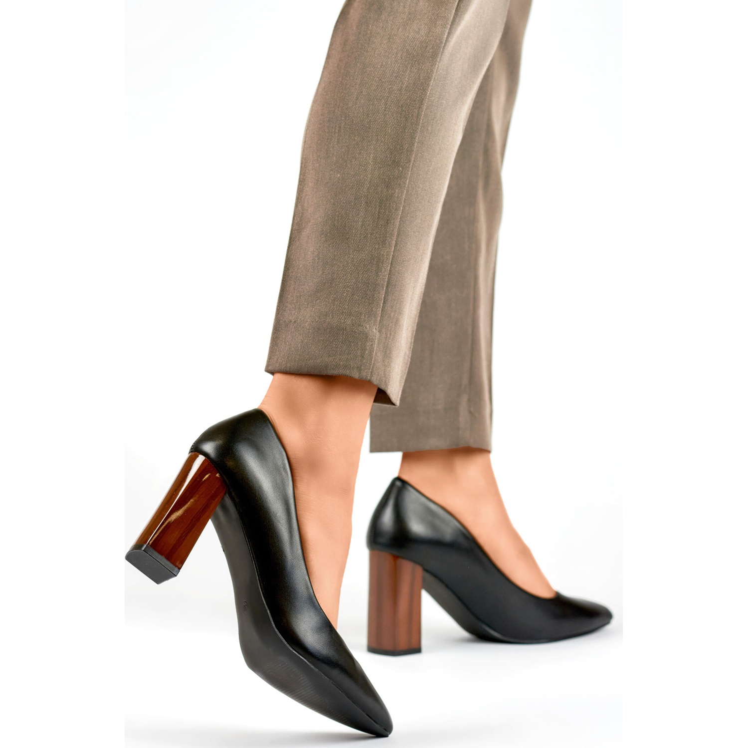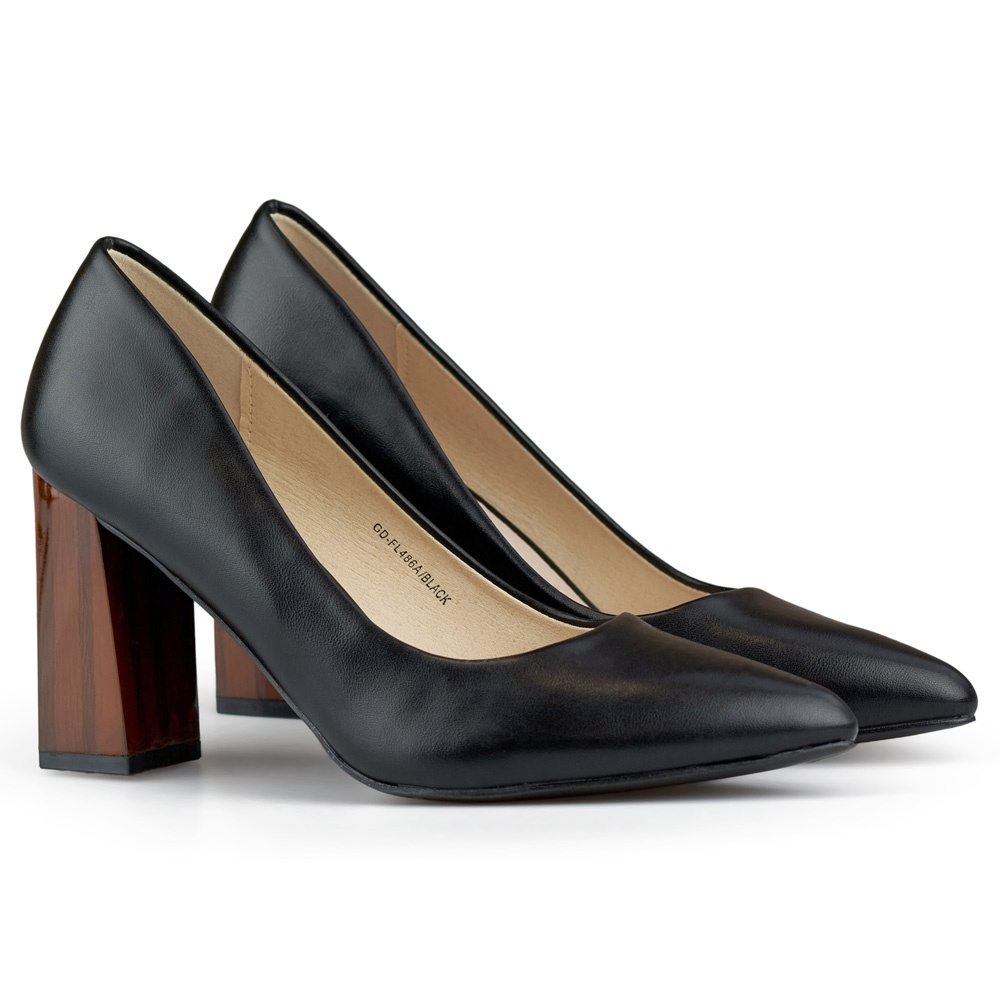 Tillverkad av ekologiskt läder, pumpar säkerställer hållbarhet och enkel underhåll. En naturläderinsats garanterar komfort, även under en lång dag. Tack vare införandet är skor extremt lätt att ta på sig, vilket säkert kommer att uppskattas av varje upptagen kvinna. Höjdhöjden 8,5 cm i kombination med en solid stolpe innebär att pumpar inte bara betonar figuren, utan också säkerställer stabilitet och komfort.