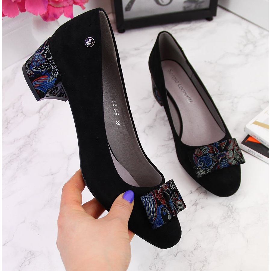 Välj elegans och komfort - välj pumps på ett dekorativt block med rosett från Sergio Leone!