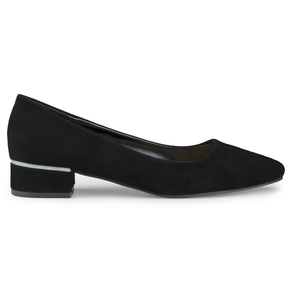 Den låga stolpen på 3,5 cm ger stabilitet samtidigt som den ger lite höjd, vilket gör dem bekväma att bära hela dagen. De svarta pumparna ser inte bara vackra ut, men tack vare läderinnersulan garanterar de komfort att bära och tillräcklig ventilation av foten.