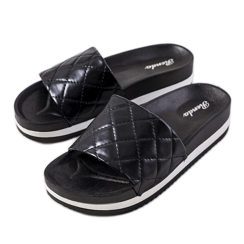 Upptäck sommarelegans med svarta quiltade Hassell-rutschbanor! Dessa unika flip-flops kommer perfekt att komplettera varje styling, kännetecknas av ett vackert, quiltat mönster gjorda av eko-läder. Deras bekvämlighet gör dem till ett idealiskt val både för en promenad och för möten med vänner.