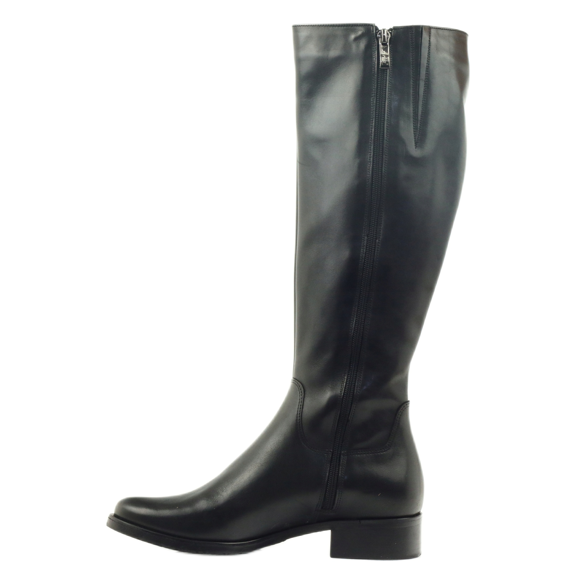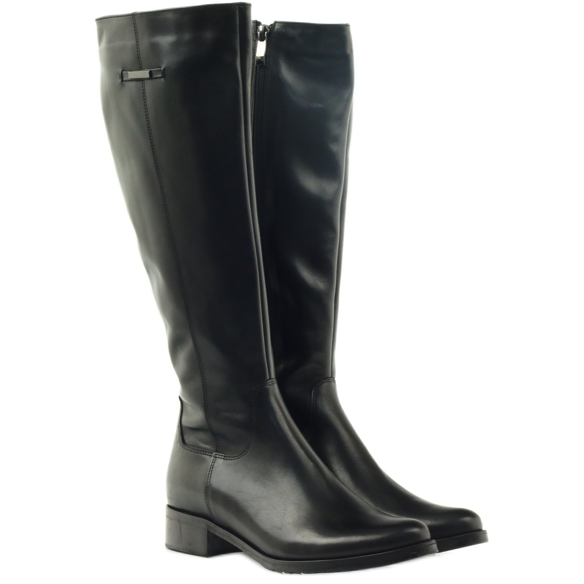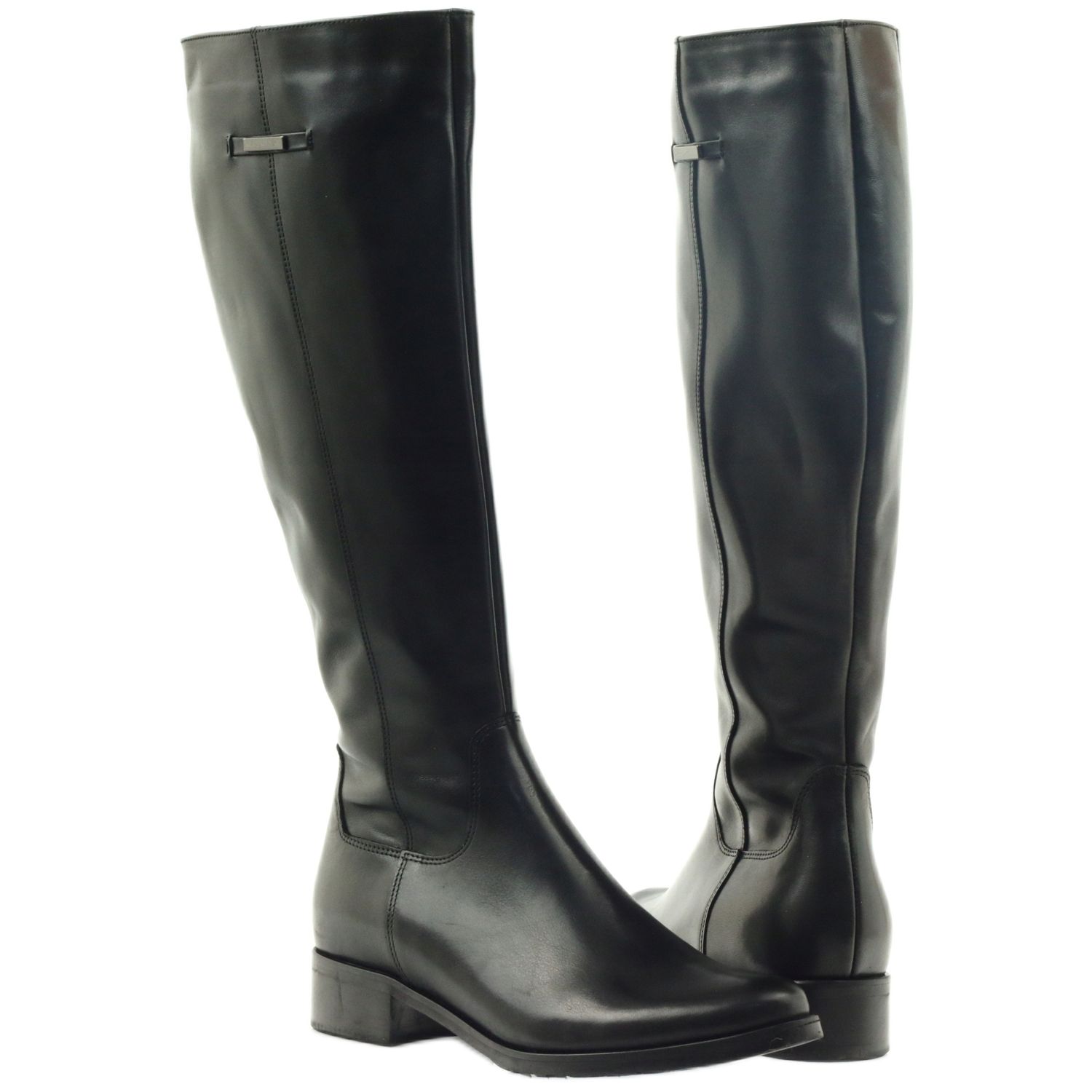 Svarta stövlar Arka 7217 är det perfekta valet för alla kvinnor som letar efter en kombination av elegans och komfort. Dessa stövlar är helt gjorda av högkvalitativt, naturligt narvläder och ger inte bara ett elegant utseende, utan också hållbarhet och komfort. Den övre längden på cirka 41 cm och bredden på 32 cm gör att de passar perfekt till alla ben.