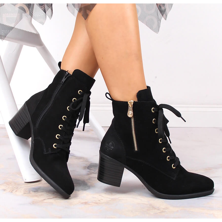 Rieker Svarta Rieker Y2022-00 stövlar i mocka på stolpen