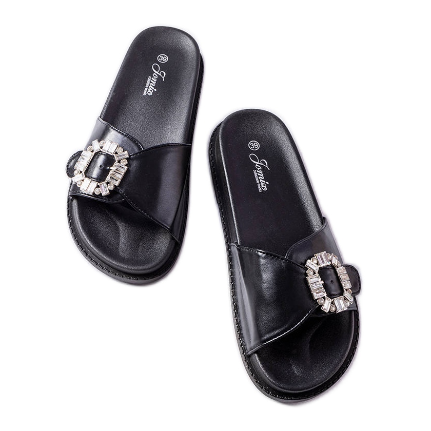 Denna produkt designades för kvinnor som värdesätter komfort hela dagen. Ovandelen, gjord av högkvalitativt gummimaterial, säkerställer hållbarhet och lätt att rengöra. Dessutom ger spännet dekorerat med zirkoner glans och elegans till denna modell, vilket gör den perfekt både för kvällsutflykter och för en promenad på stranden eller i parken.