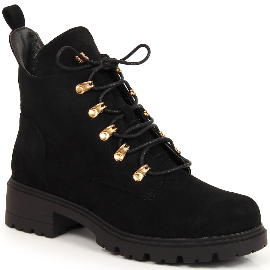 Upptäck elegans kombinerat med komfort tack vare arbetsstövlar i svart mocka för kvinnor från det välkända märket S.Barski. Dessa snygga stövlar är det perfekta valet för höst- och vinterdagar, eftersom de ger värme tack vare det isolerade fodret och pälsinlägget.