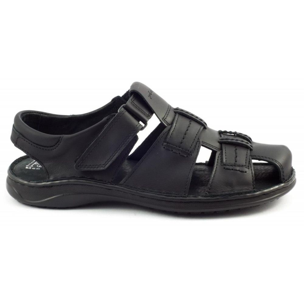 Klassiska, universella mäns sandaler Polbut SA07 är ett utmärkt val för sommaren - de kommer att arbeta under semesterresor som bekväma hemskor och för helgen. De är helt gjorda av naturläder och ger tröst även när de bär barfota och samtidigt isolerar väl från marken. En enkel, tidlös design och neutral svart färg underlättar matchning till olika stilar.