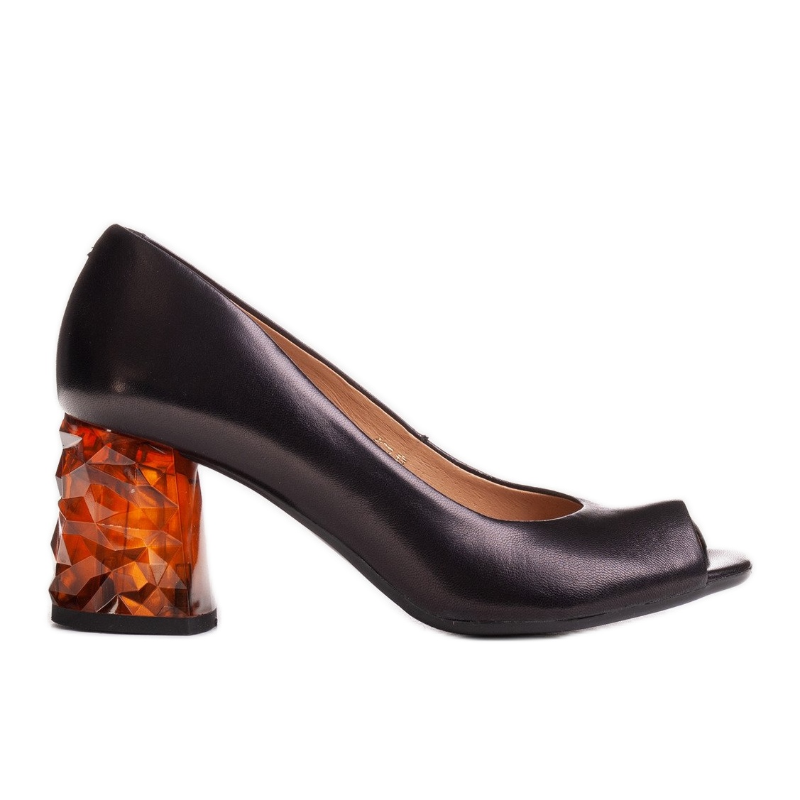 Den 7 cm höga 3D bärnstensklacken, karakteristisk för denna modell, är en original accent som skiljer skorna från klassiska modeller. Den är både stabil och bekväm, vilket gör skorna perfekta för långa timmars användning. Blockhälen tillför elegans och harmoniserar perfekt med den minimalistiska designen.