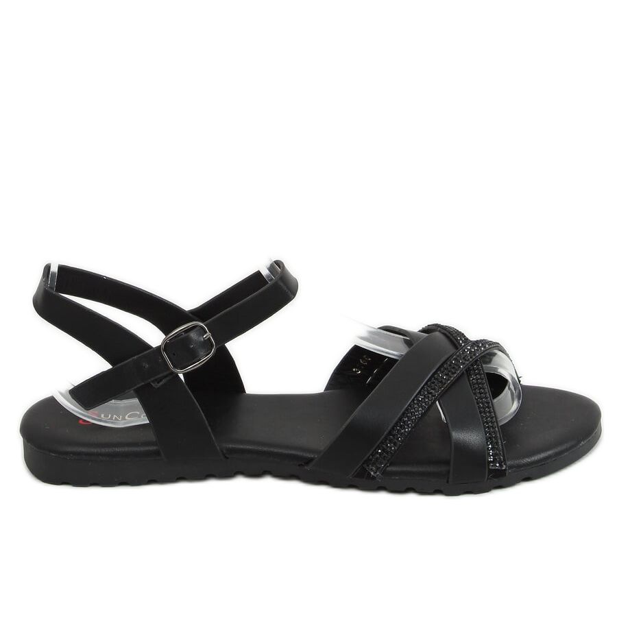 Vi presenterar 3160 Black damsandaler - det perfekta valet för sommardagar! Dessa eleganta platta sandaler är en kombination av stil och komfort som säkerligen kommer att dra till sig uppmärksamhet. Dekorerade med glänsande zirkoner, kommer de perfekt att framhäva din sommarbrun och tillför glans till varje styling. Deras klassiska noslösa design gör dem bekväma att bära hela dagen.