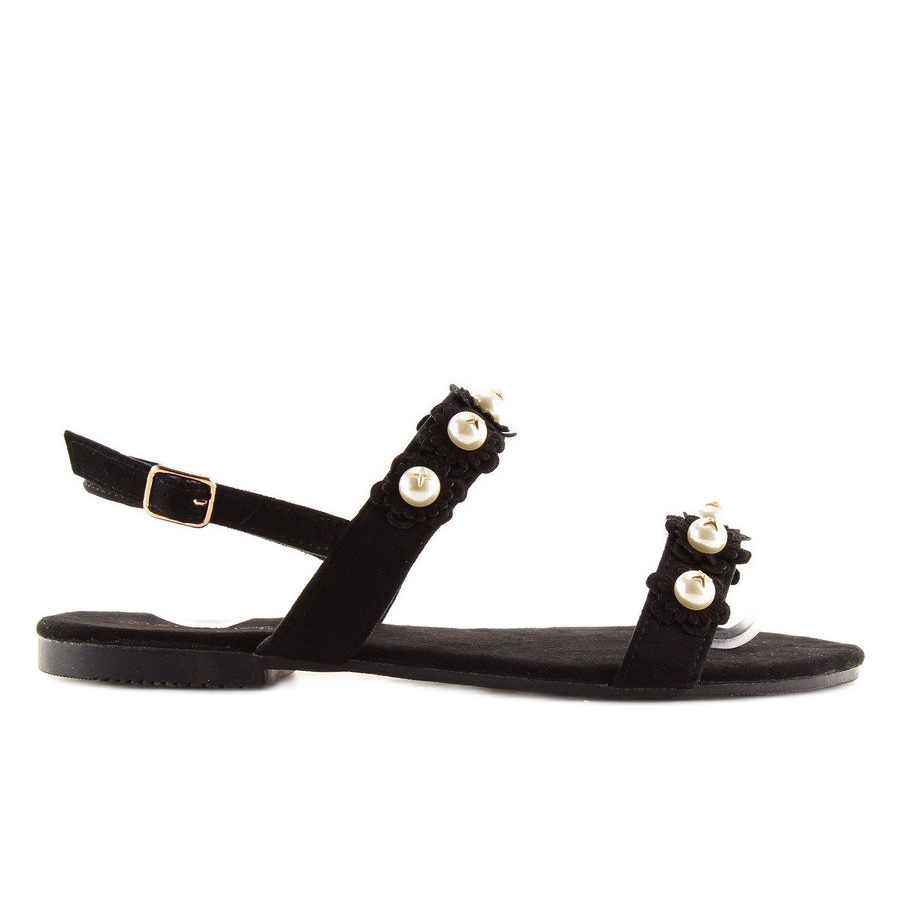 Detaljer: Svarta sandaler för kvinnor med pärlor 56-66 Svart