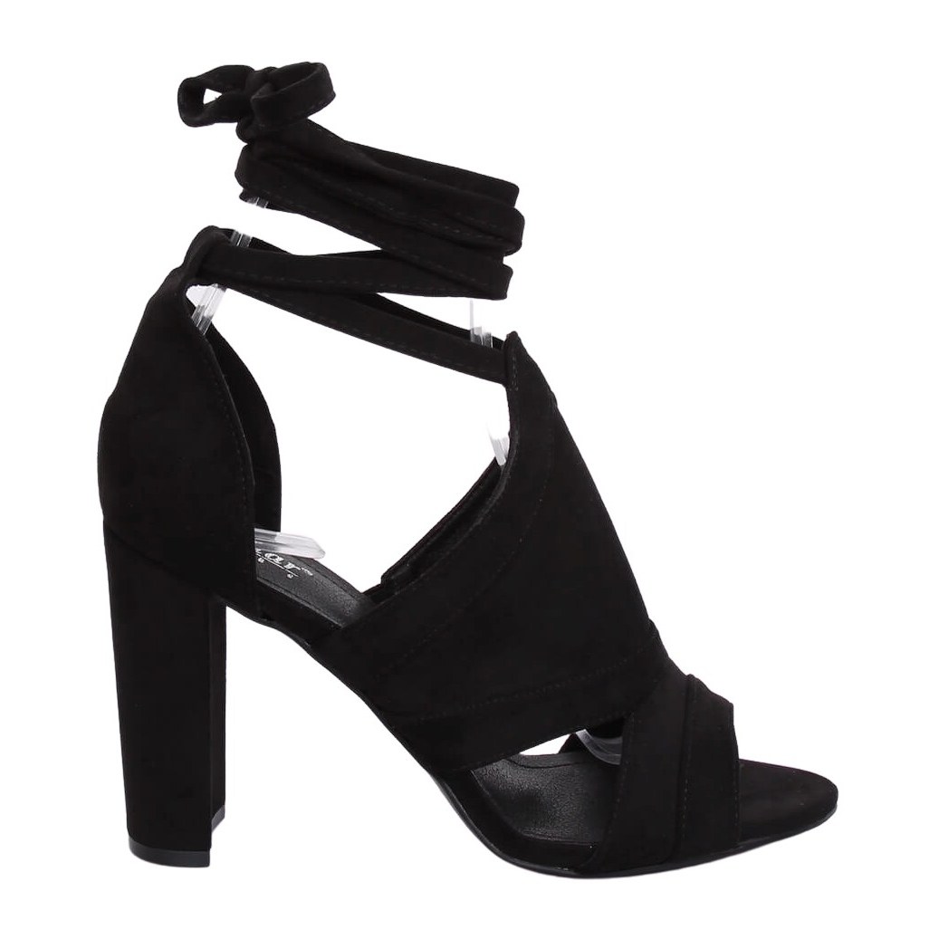 Detaljer: Svarta sandaler knutna till fotleden NS112P Svart