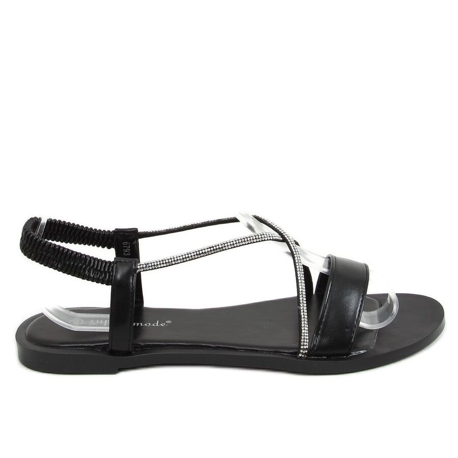 Detaljer: Svarta sandaler med kubiska zirkoner 6793 Svart